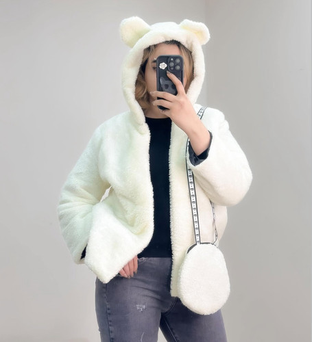 کاپشن پالتو پوست تدی کلاهدار زنانه همراه با کیف ست کیوت | ترند پینترست ست دو تیکه