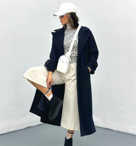 کت پالتو فوتر بلند زنانه یقه انگلیسی| مدل ترند اروپایی استردار | فریسایز 36 تا 44 | مناسب استایل کلاسیک، شیک، رسمی اداری کارمندی و دانشجویی