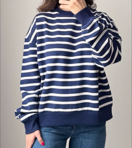دورس داخل کرکی نرم حوله ای راهراه پل اند بیر وارداتی اسپانیایی | پینترستی لش راه راه سرمه ای سفید | زنانه و مردانه | کد ۷۸