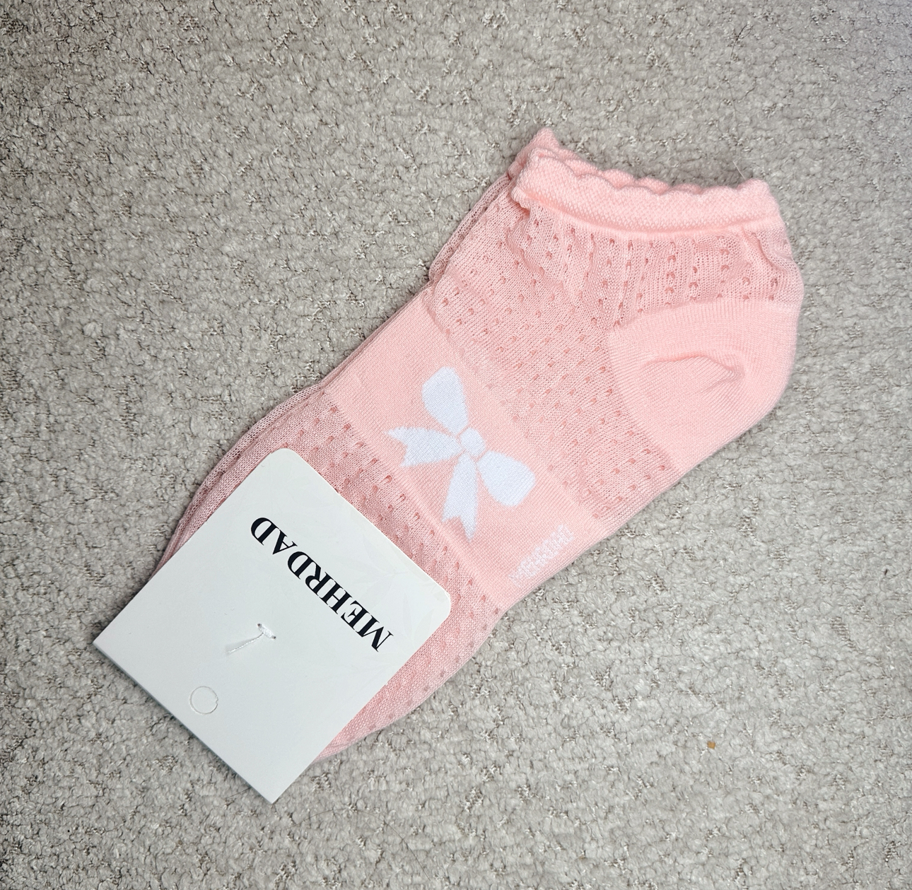 جوراب صورتی پاپیونی دخترونه ساق کوتاه | پاپیون سفید کیوت