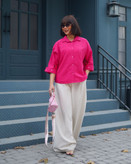 مانتو شومیز عیدانه آستین سه رب بیسیک زنانه و دخترانه | جنس لنین اسلپ کژوال فری‌ سایز ترند عید سال جدید رنگ بندی