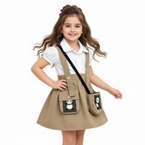 ست سه تیکه دخترانه ملودی MELODY | شومیز، سارافون، کیف | رنگ نسکافه ای | وارداتی ترند پینترستی