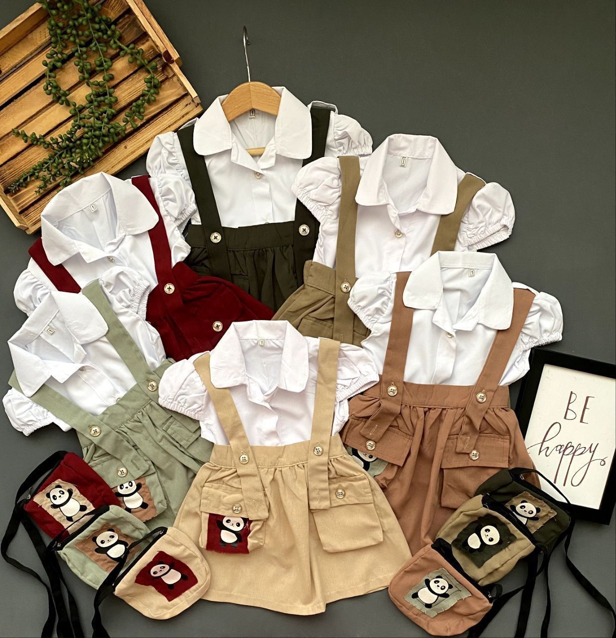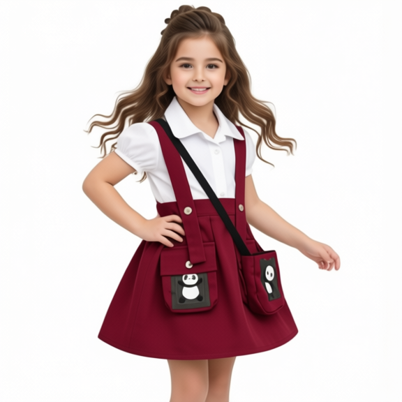 ست سه تیکه دخترانه ملودی MELODY | شومیز، سارافون، کیف | رنگ زرشکی | وارداتی ترند پینترستی