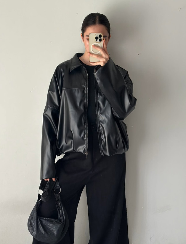 کت چرم زنانه مشکی زارا وارداتی و آستر دار فری سایز ۳۶ تا ۴۴