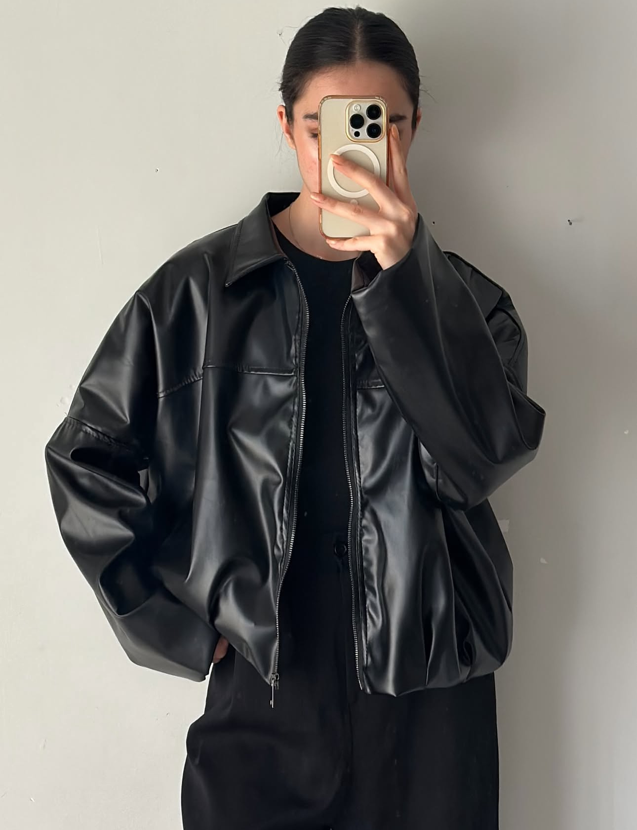 کت چرم زنانه مشکی زارا وارداتی و آستر دار فری سایز ۳۶ تا ۴۴