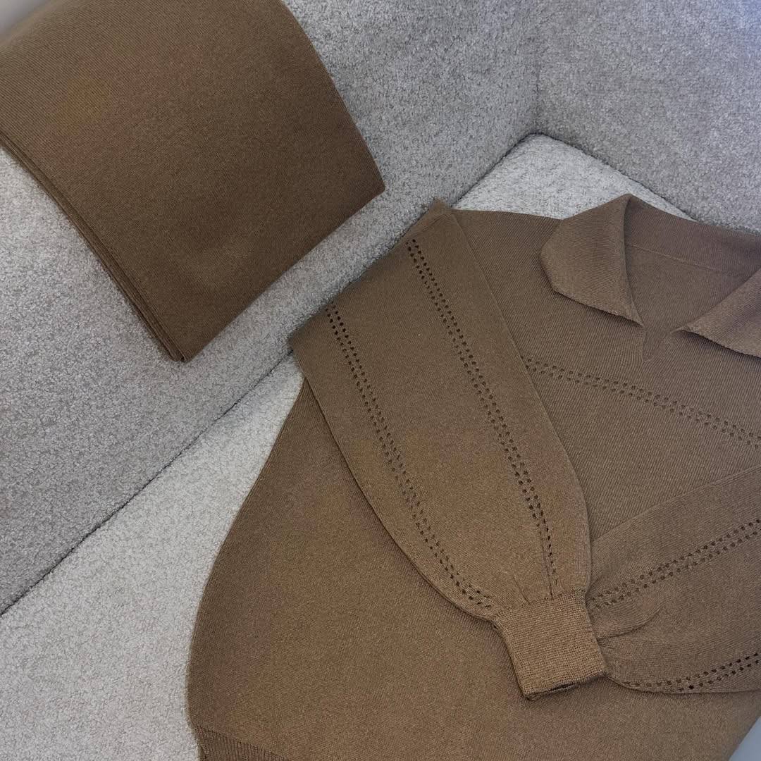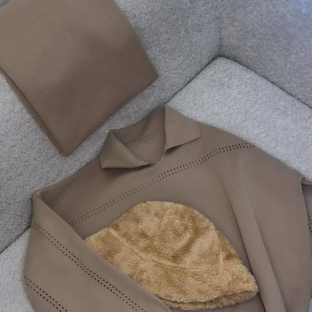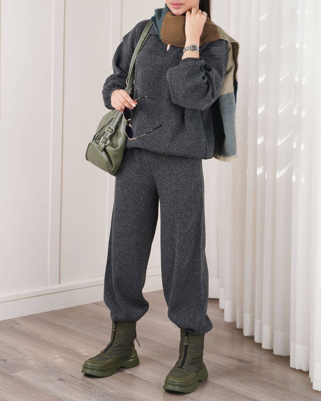 ست بافت بولیز یقهدار و شلوار نیمبگ زنانه AM فری سایز ۳۸ تا ۴۶