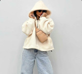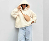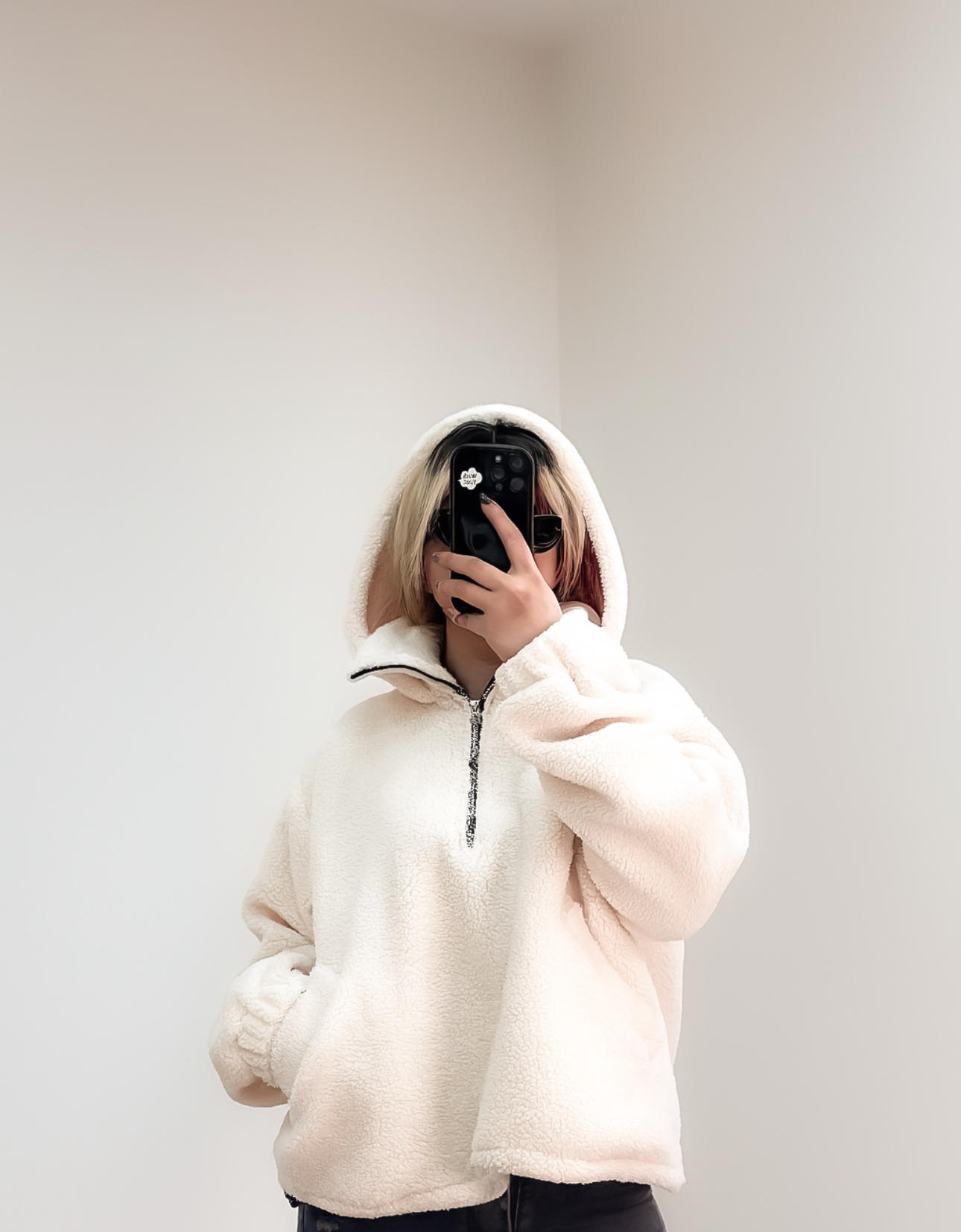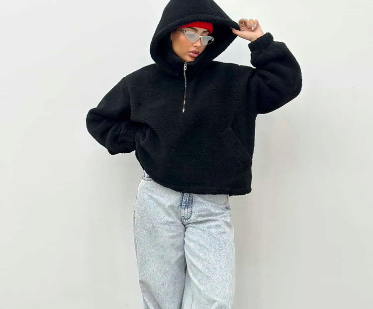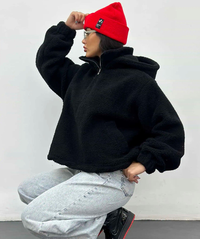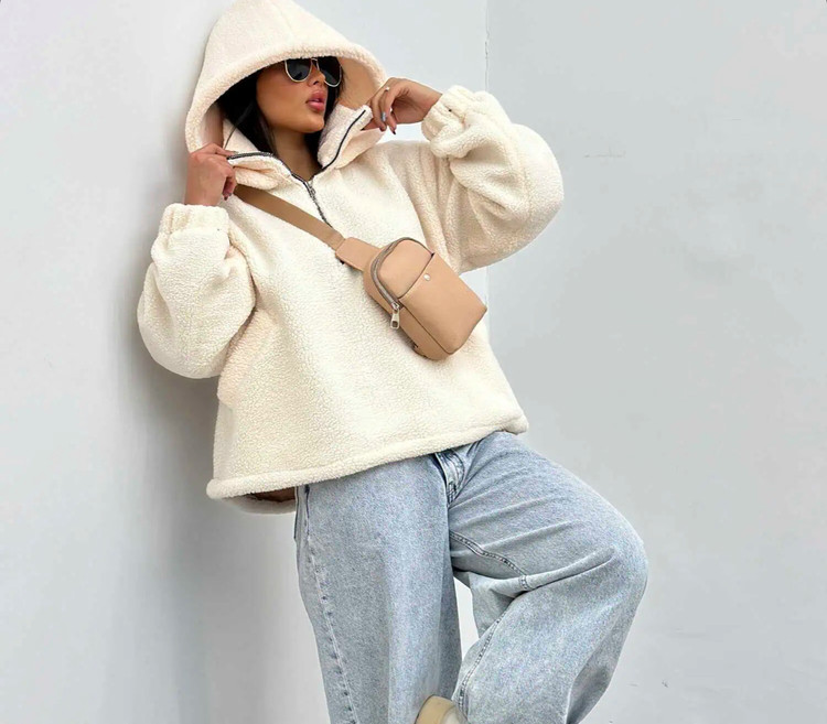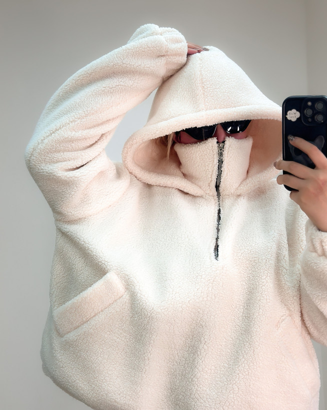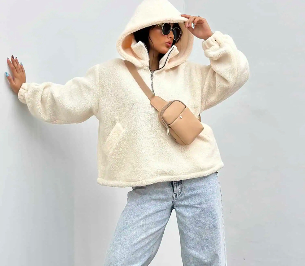 نیمزیپ هودی خز دار تدی وارداتی کیتی پوست| زنانه | استرکشی شده | هودی لطیف نرم و گرم پینترستی اعلا درجه یک – فریسایز ۳۶ تا ۴۶