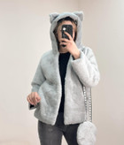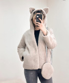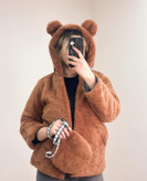 کاپشن پالتو پوست تدی کلاهدار زنانه همراه با کیف ست کیوت | ترند پینترست ست دو تیکه