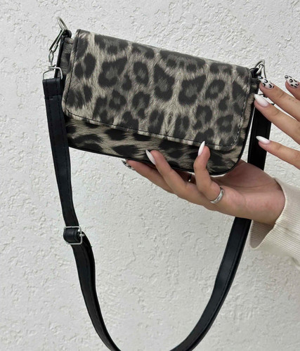 کیف دوشی پلنگی ترند | مدل شیک و خاص با طرح پلنگی طوسی و نسکافهای