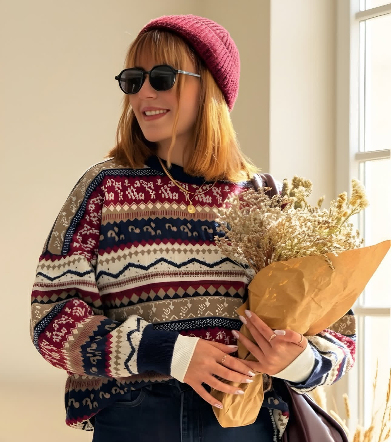 بلوز بافت وینتیج سرخپوستی زنانه | ترند پینترستی | نخ اکرلیک | فریسایز